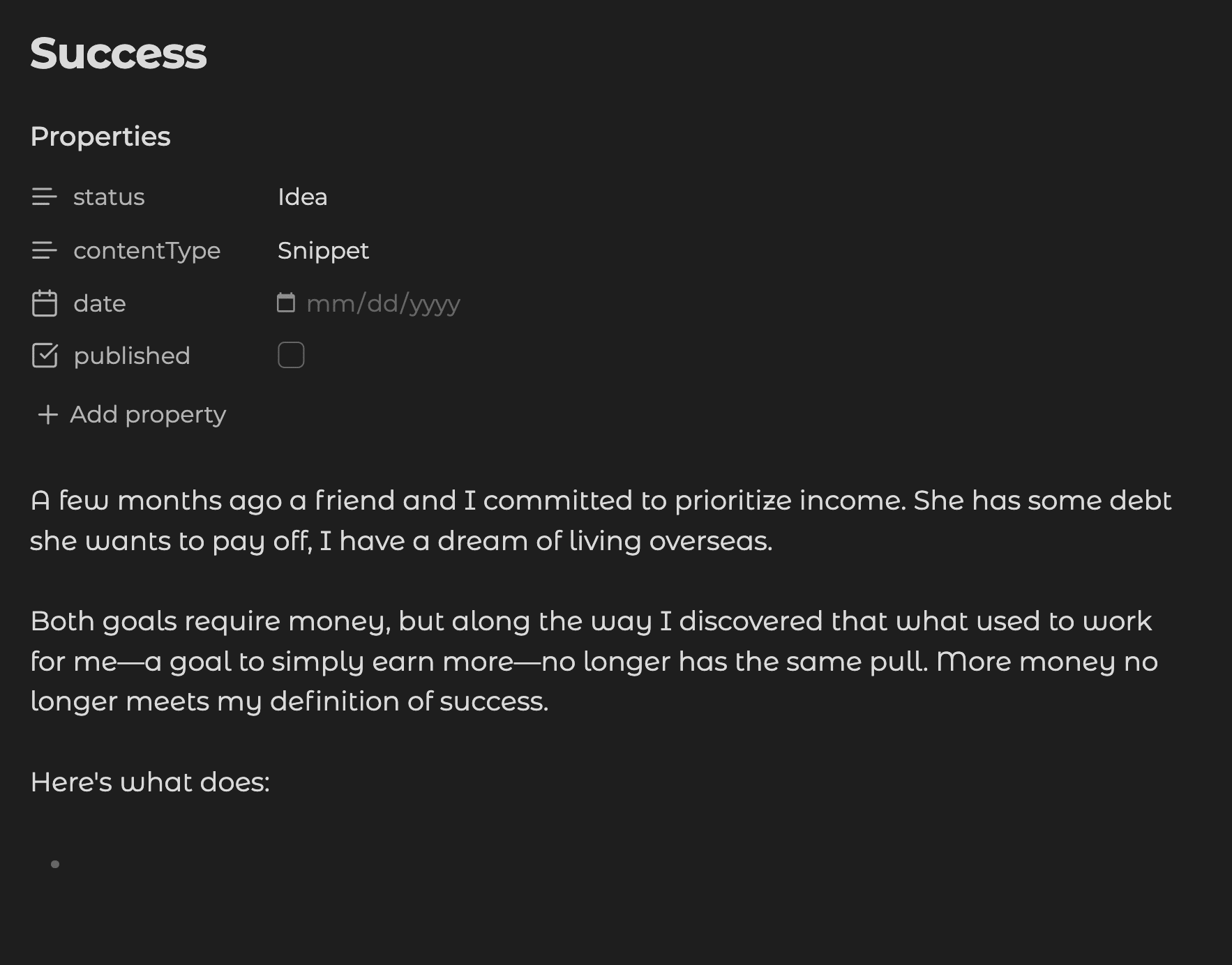 Will that snippet of an idea ever turn into an email? I don’t know. I have plenty of similar ideas that are tagged “killed” rather than “idea,” and that’s okay. Not everything is meant for publication, but every idea captured and word written improves the system and makes it stronger.